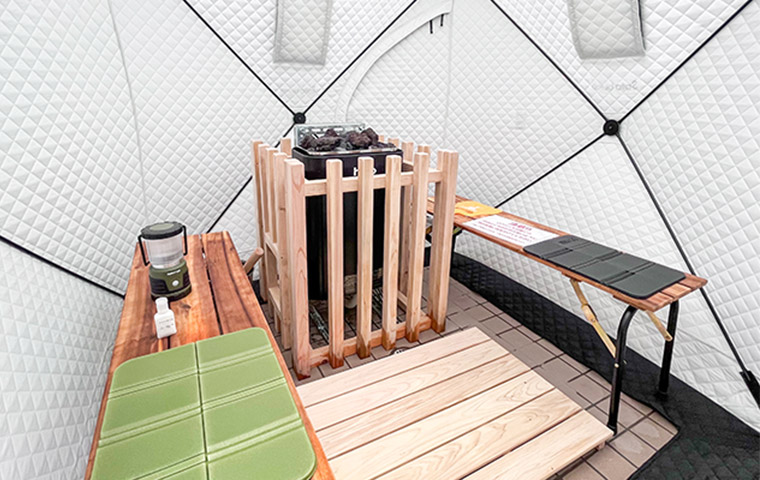 サウナはテントサウナで、完全プライベートな空間でサウナを楽しめます。