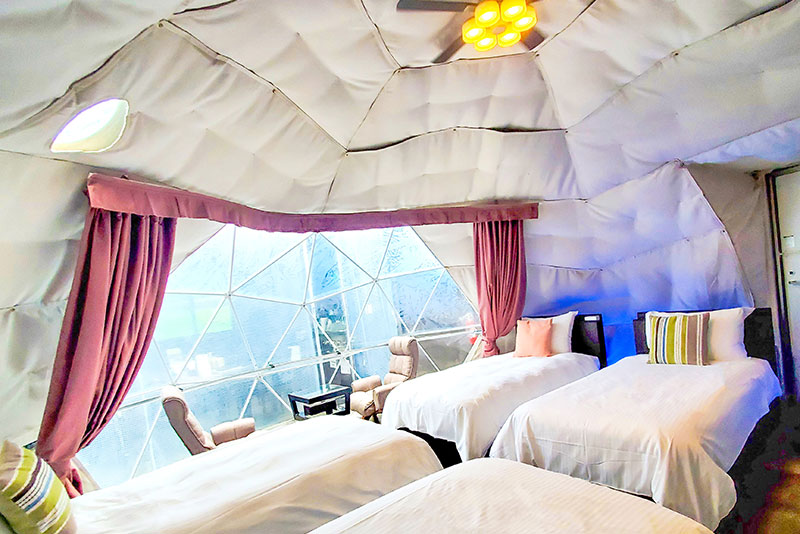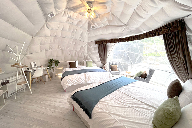 - スイートグランピング(全天候型・贅沢な空間で非日常を味わえる)